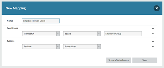 In this example, we’ve created some simple entitlement mappings in OneLogin that say if a user is part of the Employee Group in Active Directory, then they should be assigned to the Power User role in Egnyte. However, if they are part of the IT Admin Group in Active Directory, then they should be given the Admin role in Egnyte.