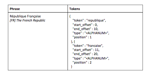 - Fold accents and national characters. This includes lower-casing the words. For example, République Française becomes republique, francaise