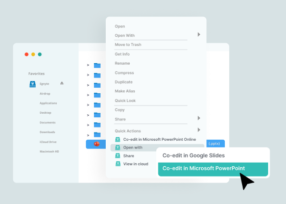 Access and co-edit files directly in the native Egnyte environment. - Data classification