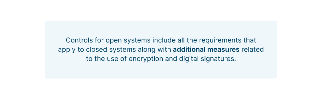Controls for open and closed systems are specified in 21 CFR Part 11 Subpart B.